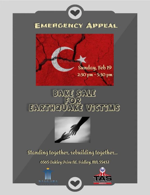 In response to this tragedy, the Turkish American Society of Minnesota is taking action and inviting you to our bake sale to remember the victims and show our support. No matter how small, your help can make a significant impact on the lives of those affected by this disaster.